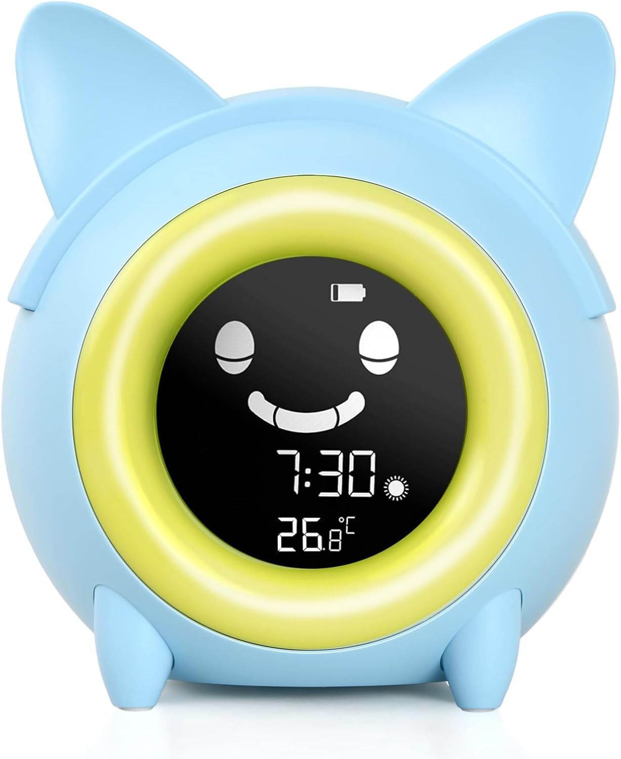 Seucasu Reveil Enfant éducatif Jour Nuit, Robot Réveil Enfant Entraîneur de Sommeil pour Enfants avec Minuterie pour Filles et Garçons (Bleu)