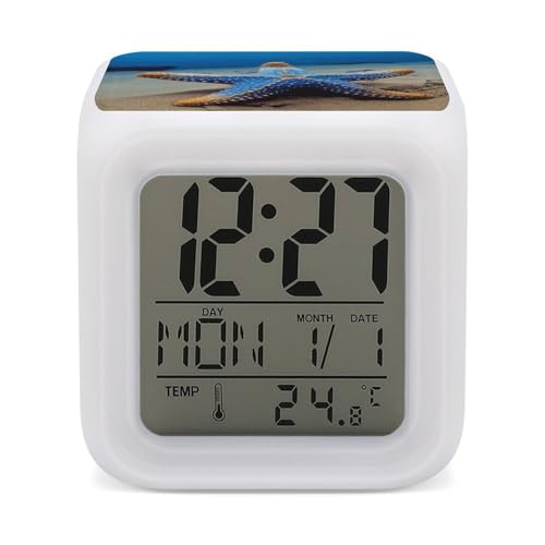 FodPand Réveil étoile de mer bleue, affichage numérique de la température avec changement de couleur, écran LED, mini horloges pour bureau, salon, chambre à coucher