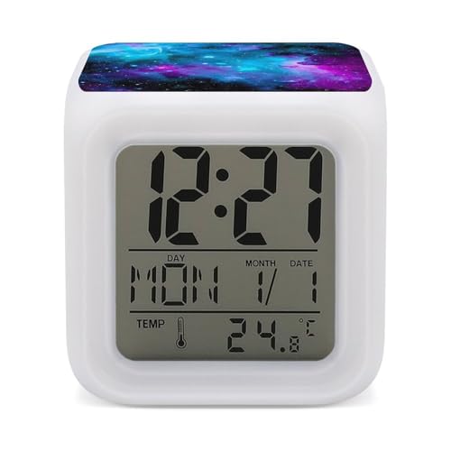 Réveil ciel étoilé violet - Affichage numérique de la température - Changement de couleur - Écran LED - Mini horloges pour bureau, salon, chambre à coucher