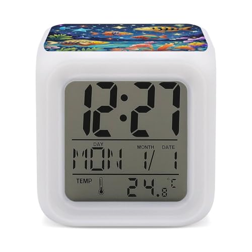 FekiLoot Réveil étoilé et poisson avec veilleuse à 7 couleurs changeantes - Réveil numérique à écran LED - Décoration de chambre - Petites horloges numériques de chevet
