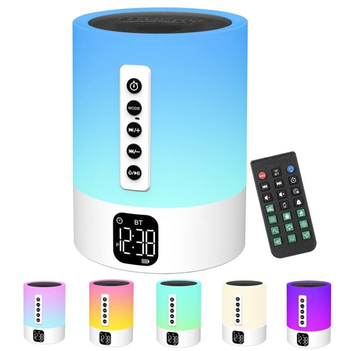 WamGra Enceinte Bluetooth Lumineuse Veilleuse,Reveil Enfant Reveil Lumineux Lampe de Chevet Tactile Veilleuse Enfant Bruit Blanc Idee Cadeau Ado,Fille Garcon,Femme,Anniversaire,Caduau Noël