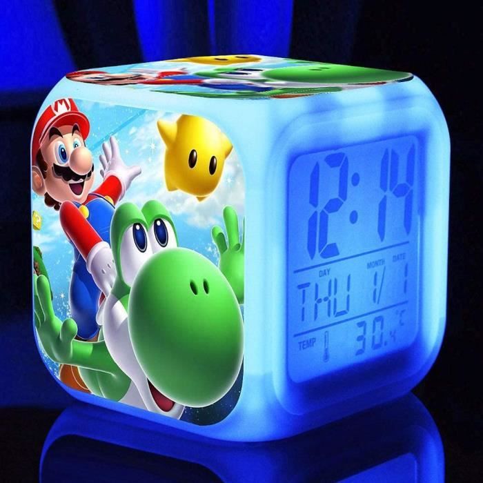 Réveil cube LED Horloge numérique lumineuse Veilleuse enfant 7 couleurs Mario & Espace Jeu vidéo
