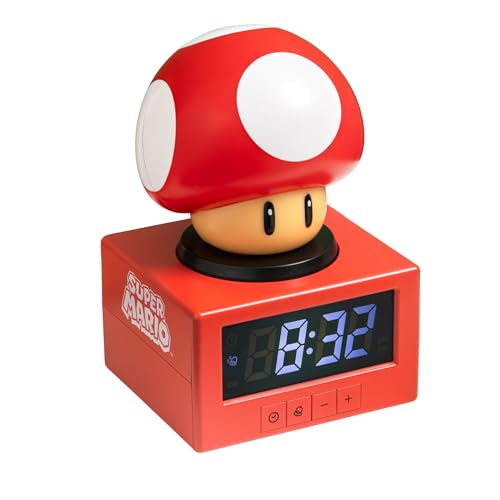 Paladone Super Mario Super Mushroom Icon Réveil avec veilleuse – Réveil numérique, Appuyez pour Faire la répétition, 16 cm de Haut, Produit Officiel Nintendo