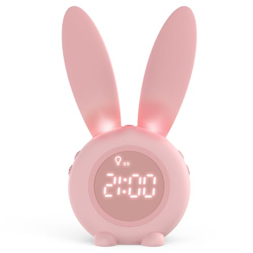 Homealexa Réveil Matin à Induction en Forme de Lapin Mignon, Intelligent Réglage Automatique Lumière de Respiration, Affichage Temps/Date/Température, Contrôle Vocal ou Tremblement