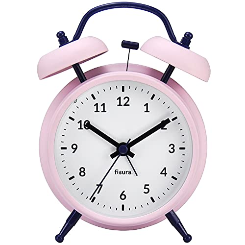 fisura. - Réveil Matin Rose et Bleu. Reveil Analogique avec veilleuse à LED. Silencieux sans Tic-Tac. Cadran de 9 centimètres. Dimensions : 11,7x5,5x16. en Métal et ABS
