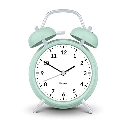 fisura. - Réveil Matin Menthe et Blanc. Reveil Analogique avec veilleuse à LED. Silencieux sans Tic-Tac. Cadran de 9 centimètres. Dimensions : 11,7x5,5x16. en Métal et ABS