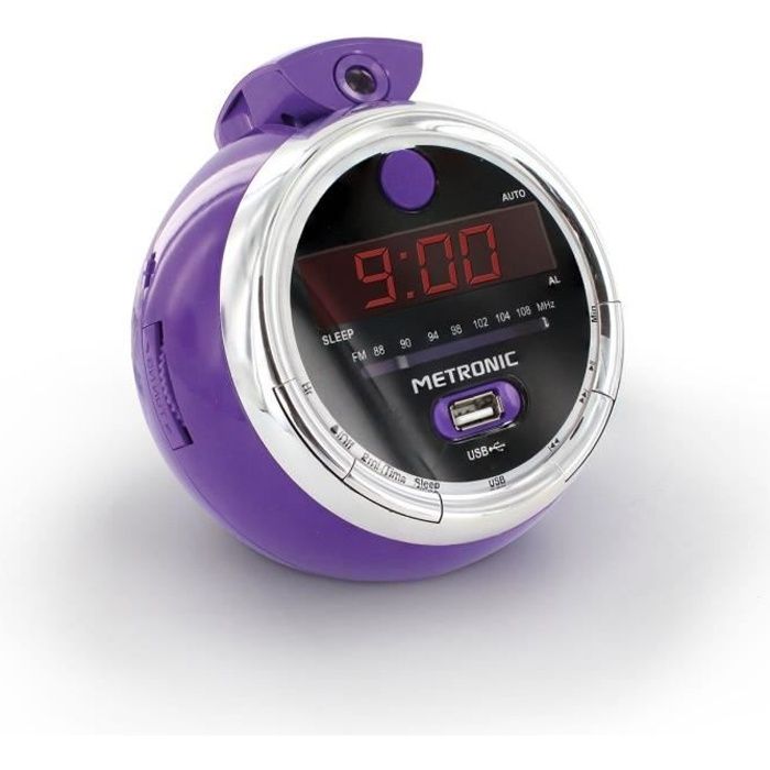 METRONIC Radio-réveil Pop Purple FM USB Projection double alarme
