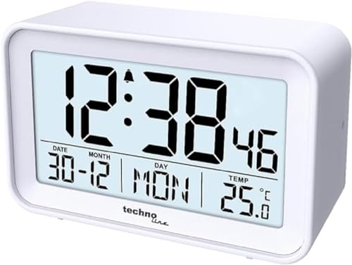 Technoline WT497 Réveil numérique Moderne, température intérieure, Date, Jour de la Semaine, Alarme et Snooze, Blanc