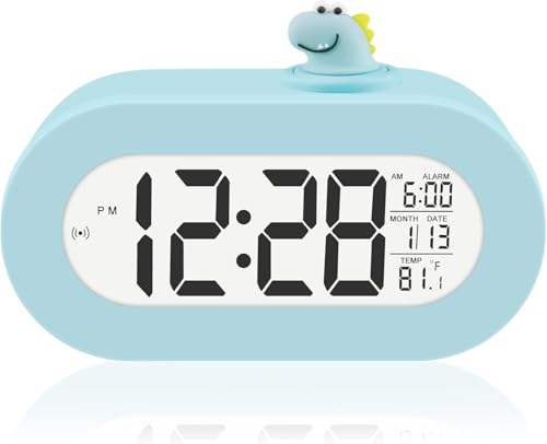 DTKID Réveil numérique pour Enfant avec Date, température, Snooze, rétroéclairage Automatique, 12/24 h, pour garçons et Filles, Chambre d'enfant, à Piles