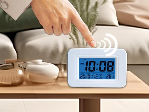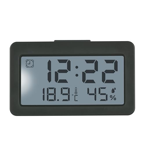 GlasFlength Réveil numérique - Réveil électronique - Table de Chevet avec Grand écran LCD - sans tic-tac - Réveil numérique avec Affichage de la température et de la Date - Réveil pour Enfants - pour