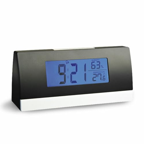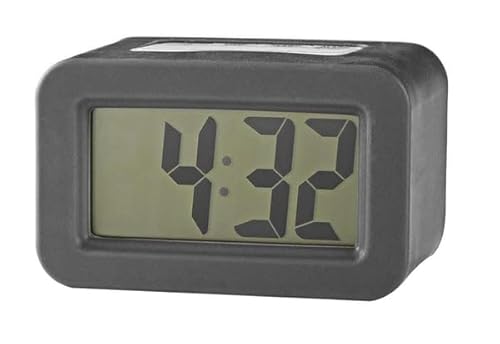 fisura. - Réveil numérique Noir avec LED. Indicateur de Date et de température. 2 alarmes. Bouton Snooze. Horloge numérique à Piles. Caoutchouc ABS Dimensions : 12 x 5,5 x 7