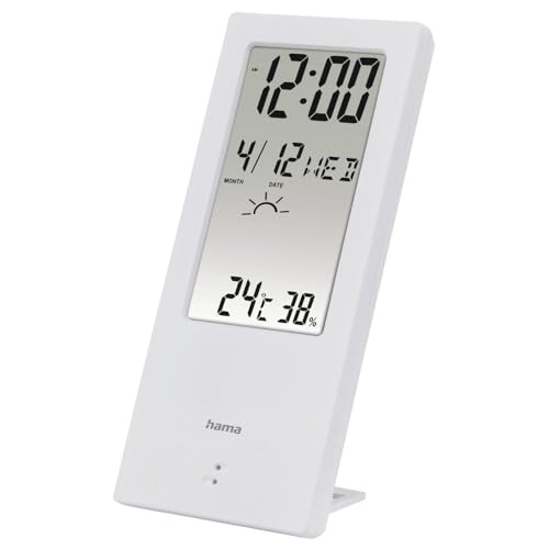 Hama Thermomètre numérique et hygromètre intérieur 2 en 1 (Thermo-hygromètre, Mesure la température ambiante et l'humidité, avec indicateur météo, écran Transparent, Affichage numérique, réveil,