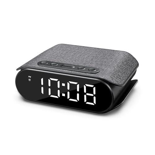 TFA Dostmann Réveil numérique avec 3 Niveaux de luminosité, 60.2042.02, avec Housse en Tissu, Fonction Snooze, Date, 3 Fonctions de réveil (Lundi au Vendre, Lundi au Vendredi Lundi au Sam, Lundi au