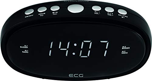 ECG RB 010 Black Radio-réveil - Tuner FM - 10 présélections - Horloge numérique/réveil - Réveil par Radio/réveil - Fonction réveil levé - Minuterie d'arrêt Noire