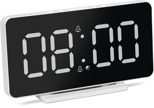 LATEC Réveil pour Dormir Profond, Réveil Numérique de Chevet avec Écran LCD 7’’, 9 Mins de Sonnerie, Double Alarme, Luminosité Réglable, 3 Niveaux de Volume, Blanc