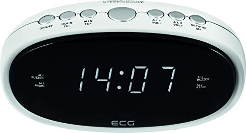 ECG RB 010 White Radio-réveil - Tuner FM - 10 présélections - Horloge numérique/réveil - Réveil par Radio/réveil - Fonction réveil - Minuteur d'arrêt Blanc