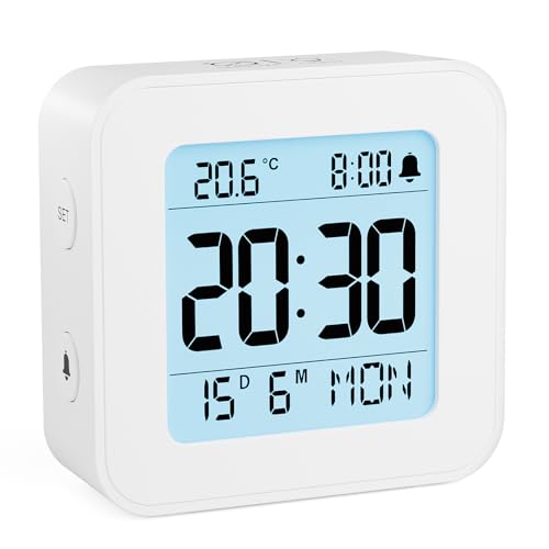 LATEC Réveil, Réveil Numérique à Piles avec Température et Calendrier, Alarme, Snooze, Rétroéclairage pour Voyage, Chambre, Bureau(Piles incluses)