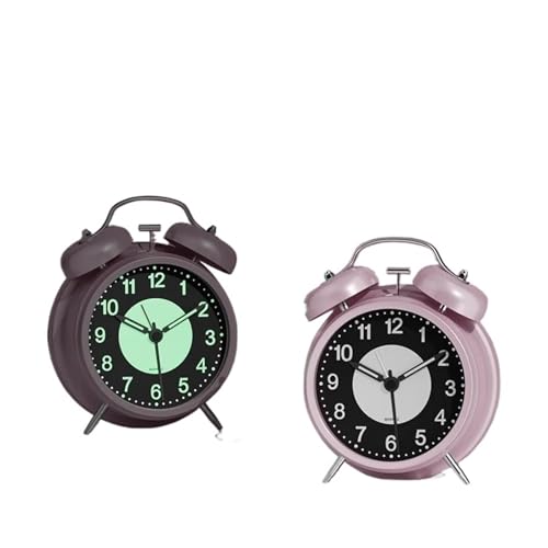 Lesipee Réveil Analogique Vintage avec Cadran Lumineux, Veilleuse, Réveil Double Cloche Portable en Métal, Reveil a Pile, Sans Tic-tac, Convient aux dormeurs profonds,Enfants, Adultes, Personnes âgées