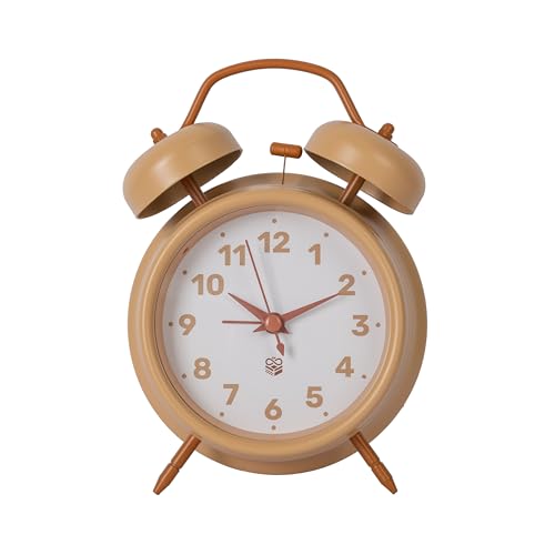 GIFTMARKET – Réveil analogique Silencieux Beige avec Double Cloche et lumière Nocturne. Réveil de Chevet sans tic-tac au Design rétro. Horloge 11,7 x 16 cm idéale pour la Chambre ou Le Bureau.