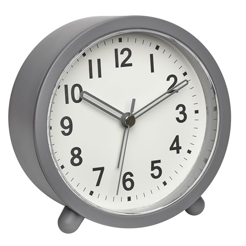 GIFTMARKET - Réveil Analogique Silencieux à Double Cloche Avec Veilleuse, Gris, Sans Tic-Tac, Alarme Bruyante, 11,7 cm x 16 cm