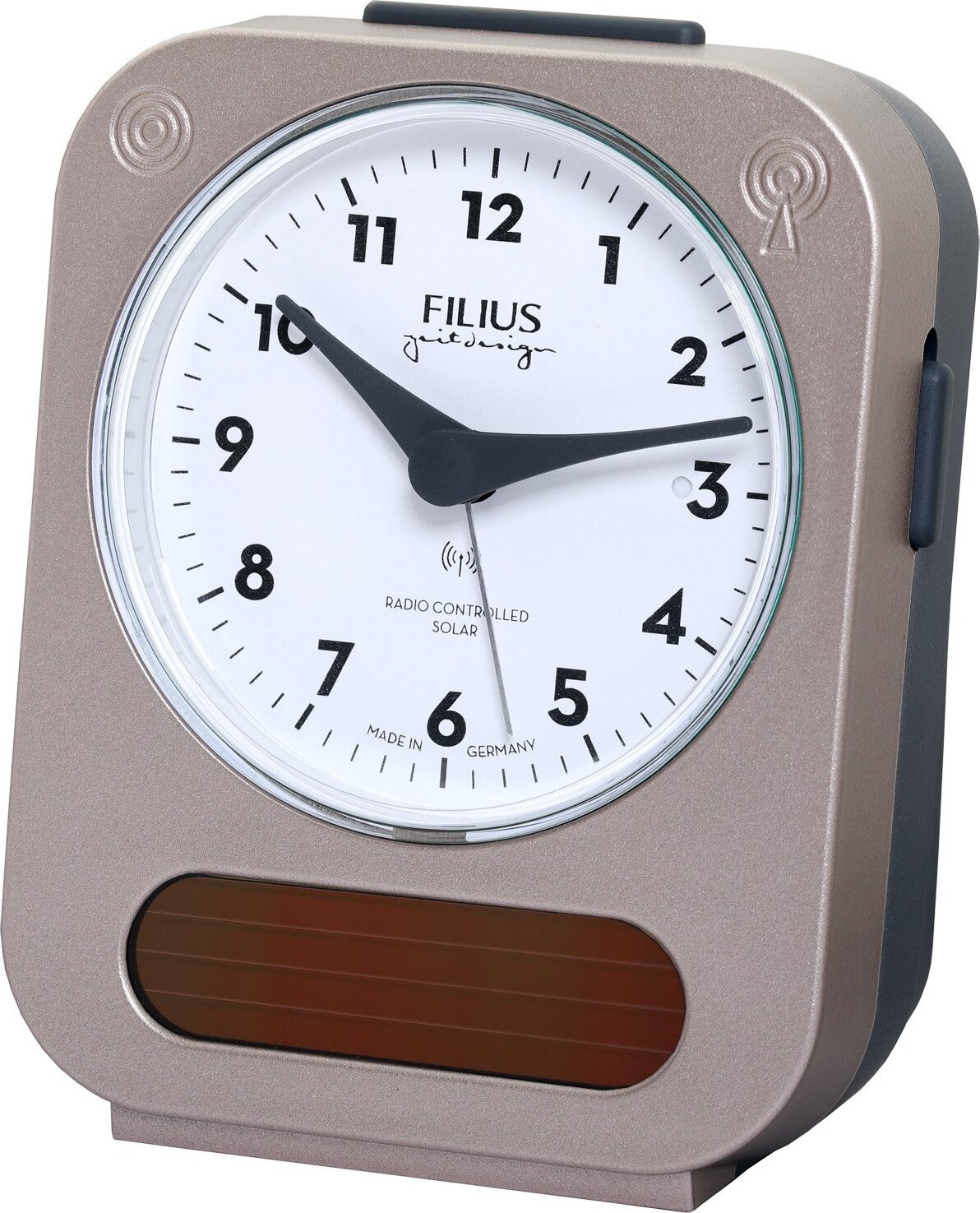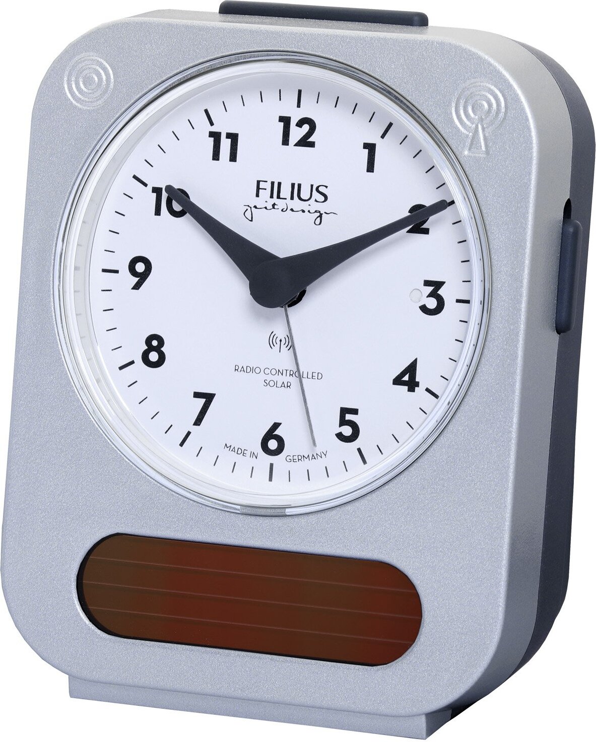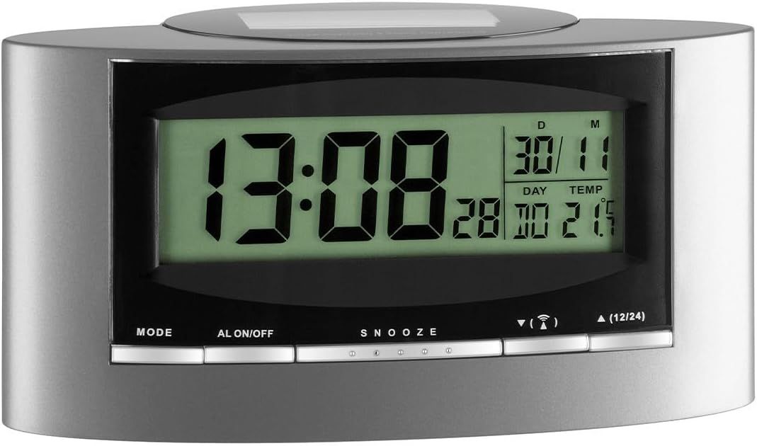 TFA Dostmann réveil Radio-piloté numérique, 98.1071, avec température, entièrement à l'énergie Solaire, Jour de la Semaine et Date, Affichage de la température, Plastique, Argent-Noir
