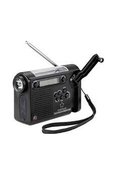 Radio portative RF-CR-200 FM, AM, ondes courtes (OC) radio durgence rechargeable, panneau solaire, manivelle, fonction réveil, lampe de poche noir