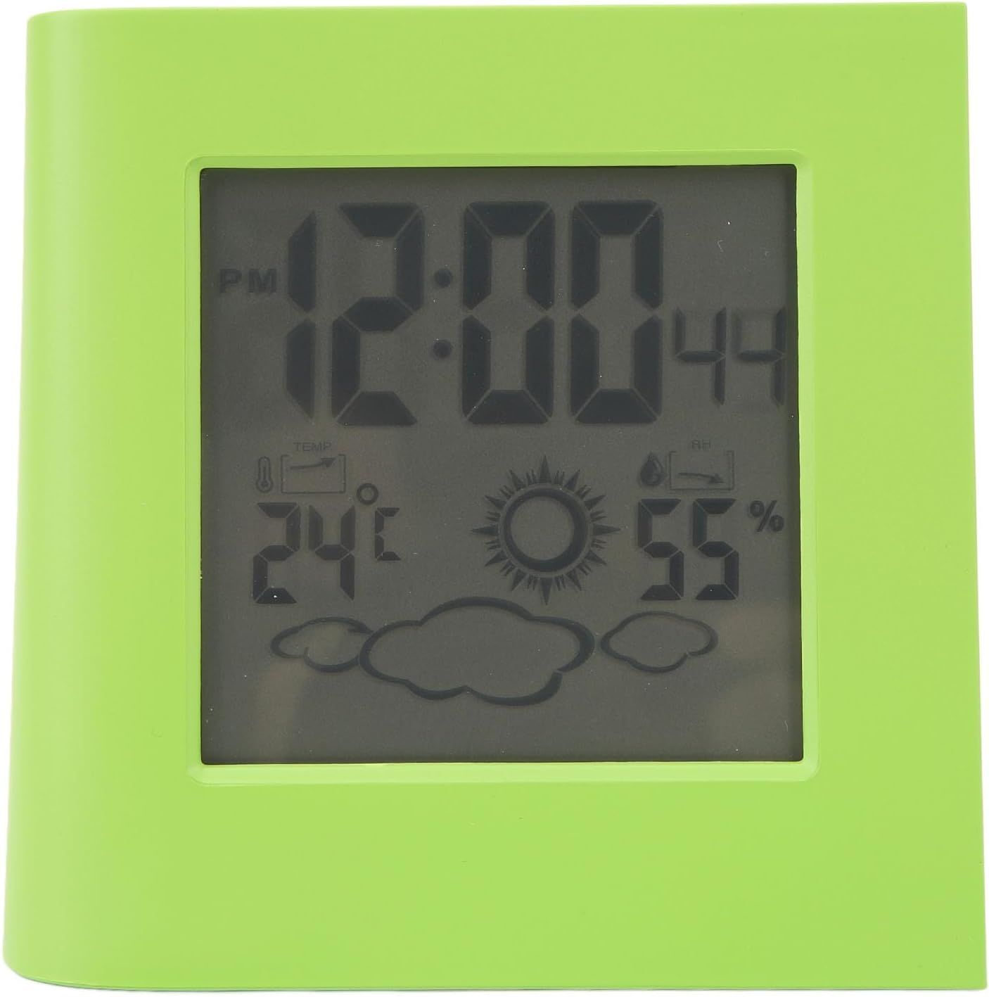 Horloge Chaude avec Prévisions de Temps, Réveil Solaire avec Batteries, Facile à Lire, Grand Nombre pour Les Hôtels et Les Maisons (Green)