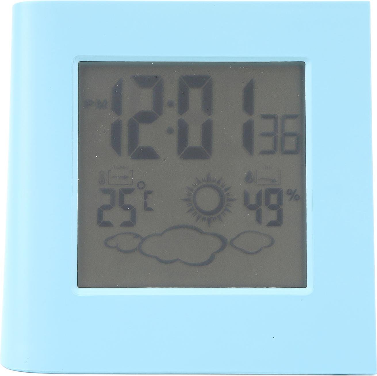 Réveil de Prévisions Météorologiques, Affichage de la Température Fonction de Minuterie LCD Claire Réveil Solaire à Batterie Facile à Lire pour Les Maisons pour Les écoles (Blue)