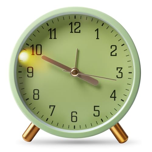PORFOYO Reveil Analogique - Reveil Vintage sans Tic-Tac, Reveil Matin, Réveils À Quartz, Horloge A Poser, Reveils A Piles, Horloge De Table, Réveils De Voyage pour Bureau Maison Chambre(Vert)