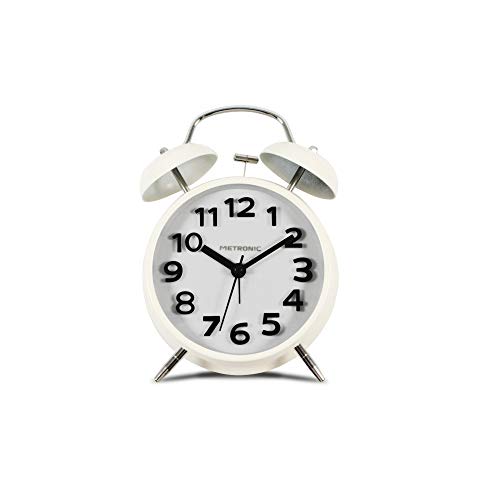 Surakey Reveil Vintage sans Tic-tac, Double Cloche Réveil Métal, Petit Rond Réveil Numérique avec Veilleuse, Réveil Quartz Silencieux, Style Européen Horloge de Bureau Vintage pour Chambre (Blanc)