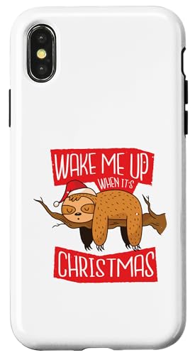 Paresseux drôle, réveille-Moi Quand C'est Noël Noël Coque pour iPhone X/XS