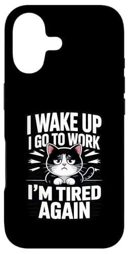 Meme drôle sur Le Travail des Chats : « Je me réveille, Je Vais au Travail, Je suis à Nouveau fatigué » Coque pour iPhone 16 Pro Max