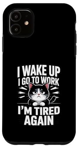 Meme drôle sur Le Travail des Chats : « Je me réveille, Je Vais au Travail, Je suis à Nouveau fatigué » Coque pour iPhone 11