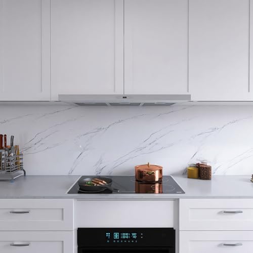 Livelynine Revêtement Plan de Travail Adhésif Cuisine Salle de Bain 90CMx500CM Imperméable Credence Adhesive pour Cuisine Marbre Blanc Papier Peint Salle de Bain Adhesif Marbre Blanc Vinyle Adhesif