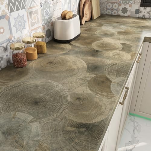 ReWallpaper Gris Brun Vinyle Adhesif Meuble Bois 60CMx5M Film Adhesif Plan De Travail Table Papier Peint Autocollant Mural Bois pour Chambre Salon Decoratif Revetement Mural Cuisine Adhésif