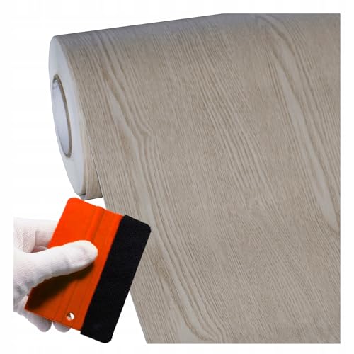 Livelynine 40CMx10M Papier Adhesif pour Meuble Bois Marron Clair Imperméable Revetement Adhesif Meuble Cuisine Film Adhésif pour Meubles Bois Papier Vinyl Adhésif Table Credence Adhesive Penderie