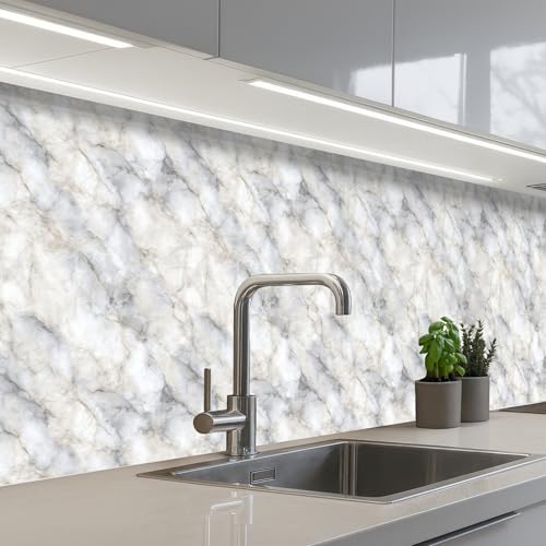 KitchenYeah© Credence Cuisine Adhesive 80x300 cm Protege Mur Revetement Mural Adhesif Parement Interieur À Coller Plaque Plastique Rigide Beige - Marbre - Veines blanches
