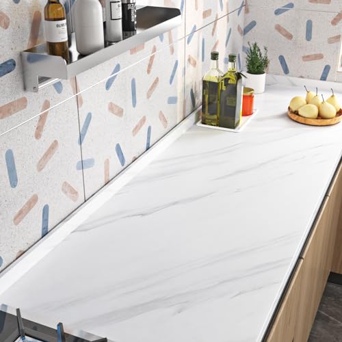 Livelynine Vinyle Adhesif Marbre Gris Clair 40CMx10M Revetement Adhesif Meuble Cuisine Armoire Bureau Papier Peint Autocollant Mural Salle de Bain Marbre Blanc Film Adhésif pour Meuble Plan de Travail