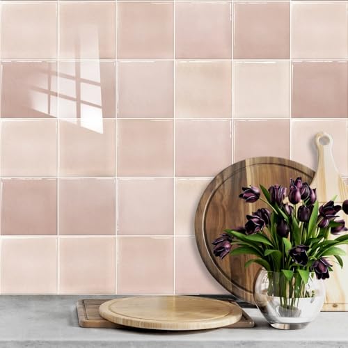 Dalle pvc Adhesive Murale Rose Clair Credence Adhesive pour Cuisine Stickers Carrelage Adhesif Mural Cuisine Salle de Bain Revetement Mural Adhesif Durable Papier Peint 15x15cm/10 Pcs