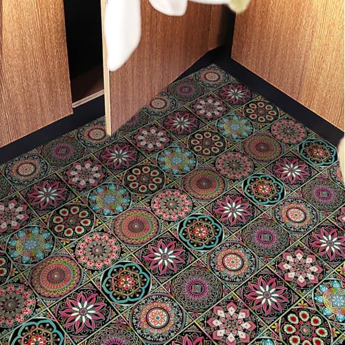 Dalle pvc Adhesive Murale Mandala Rouge Vert Credence Adhesive pour Cuisine Stickers Carrelage Adhesif Mural Cuisine Salle de Bain Revetement Mural Adhesif Durable Papier Peint 30x30cm/10 Pcs