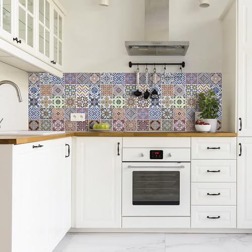 HEATSHAKING Lot de 20 Stickers Muraux Adhésifs pour Carrelage 10x10 Cm, Pvc Imperméable et Anti-huile, Décorations Décoratives Cuisine, Salle de Bain et Revêtement Mural Intérieur