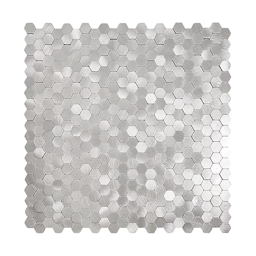HOME DECO FACTORY - HD7713 - Crédence Adhésive Rigide Mosaïque Argentée - Revêtement Mural Décoratif Facile à Poser - Idéal pour Cuisine et Salle de Bain - 60X30 cm - Gris