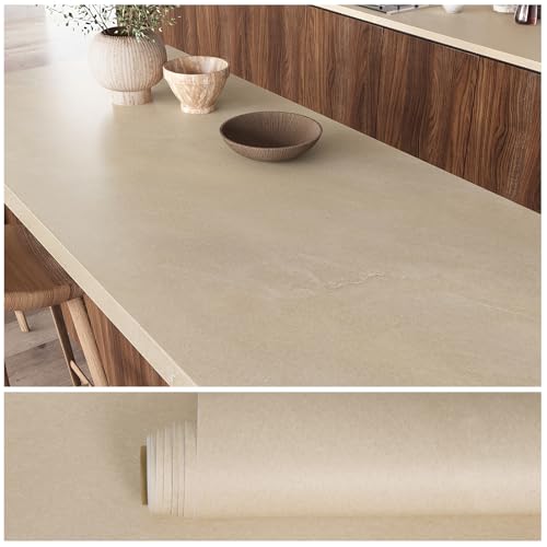 VEELIKE Papier Adhesif Marbre Beige Mat Revetement Plan de Travail Cuisine Lavable Papier Peint Marbre Beige Epais Vinyle Adhesif Cuisine Salle de Bain Adhesif Mural Decoratif Chambre 40 cm x 300 cm