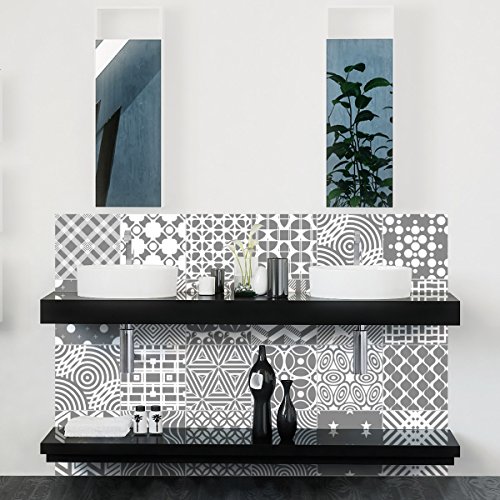 30 Stickers adhésifs carrelages | Sticker Autocollant Carreaux de Ciment - Mosaïque carrelage Mural Salle de Bain et Cuisine | Carreaux de Ciment adhésif Mural - azulejos - 20 x 20 cm - 30 pièces