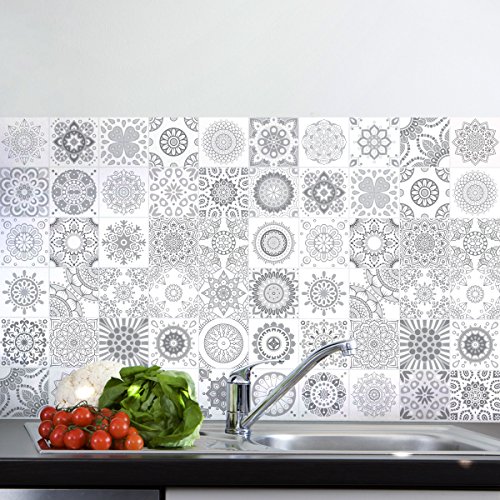 60 Stickers adhésifs carrelages | Sticker Autocollant Carreaux de ciment - Mosaïque carrelage mural salle de bain et cuisine | Carreaux de ciment adhésif mural - azulejos - 15 x 15 cm - 60 pièces