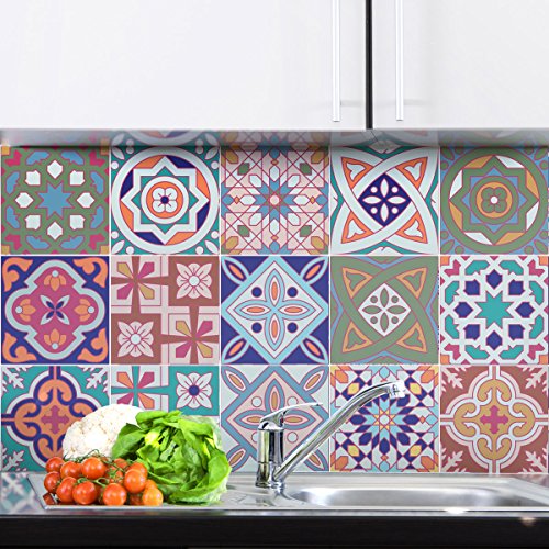 24 Stickers adhésifs carrelages | Sticker Autocollant Carreaux de Ciment - Mosaïque carrelage Mural Salle de Bain et Cuisine | Carreaux de Ciment adhésif Mural - azulejos - 15 x 15 cm - 24 pièces
