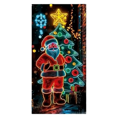 YNPQTDS Décoration de Porte de Noël - 89 x 180 cm - Grand revêtement de Fluorescent Festif - Décoration de Vacances - pour l'intérieur, l'extérieur, la Maison, Les fêtes, la Ferme