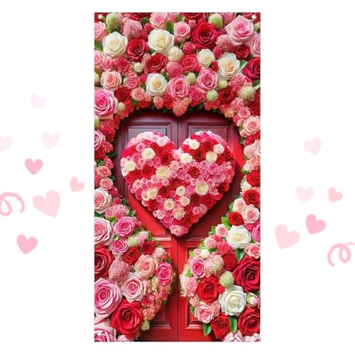 Housse de porte pour saint – enseigne motif coeurs et roses romantiques | revêtement de porte 90 x 180 cm, décoration de fête, intérieur extérieur, couverture de romantique, détails