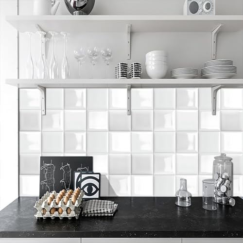 Dalle pvc Adhesive Murale Blanc Credence Adhesive pour Cuisine Stickers Carrelage Adhesif Mural Cuisine Salle de Bain Revetement Mural Adhesif Durable Papier Peint 30x30cm/10 Pcs