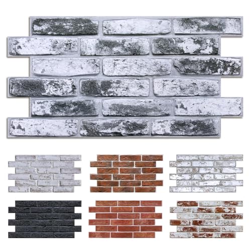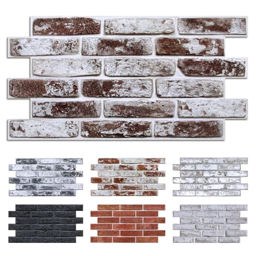 Commomy 12 Pièces Panneaux muraux 3D Autocollants Aspect Brique Pierre, 58 x 30 cm, 3 MM D'épaisseur, Revêtement Mural PVC pour Salon, Cuisine, Chambre à Coucher, Intérieur